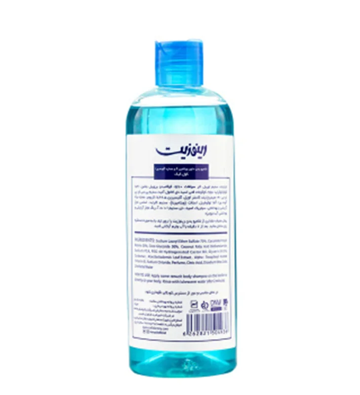 روش استفاده: مقداری از شامپو بدن رینوزیت را روی لیف حمام یا به صورت مستقیم روی بدنتان بمالید. بعد از 2 دقیقه با آب ولرم آبکشی نمایید.