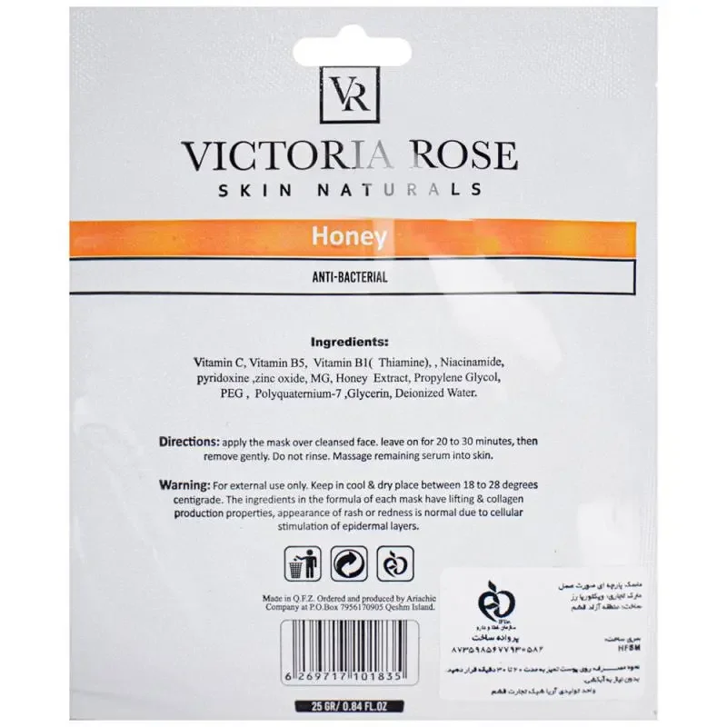 به پوست خود زیبایی و طراوتی نو ببخشید با ماسک صورت ورقهای ویکتوریا رز حاوی عصاره عسل! این ماسک با خاصیت آبرسانی و تغذیه عمقی، پوست شما را روشن و شاداب میکند. با ظرفیت 25 میلیلیتر، تجربهای از نرمی و لطافت را به پوستتان هدیه دهید. مناسب برای همه نوع پوست، همین حالا امتحان کنید!